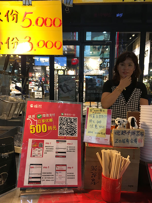 韓國夜市小販也支持微信支付。