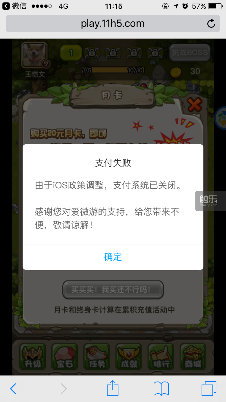但問題是,蘋果將硬件與渠道捆綁,微信本身也是在iOS端運行的APP,只是利用了其公眾號系統開辟了一個APP內的游戲渠道,實際上是受制于蘋果官方的。因此,微信配合蘋果處理H5游戲的支付漏洞,也是無法避免的,盡管處理的結果是大把的H5游戲公眾號仍然未做改變,照常運轉。