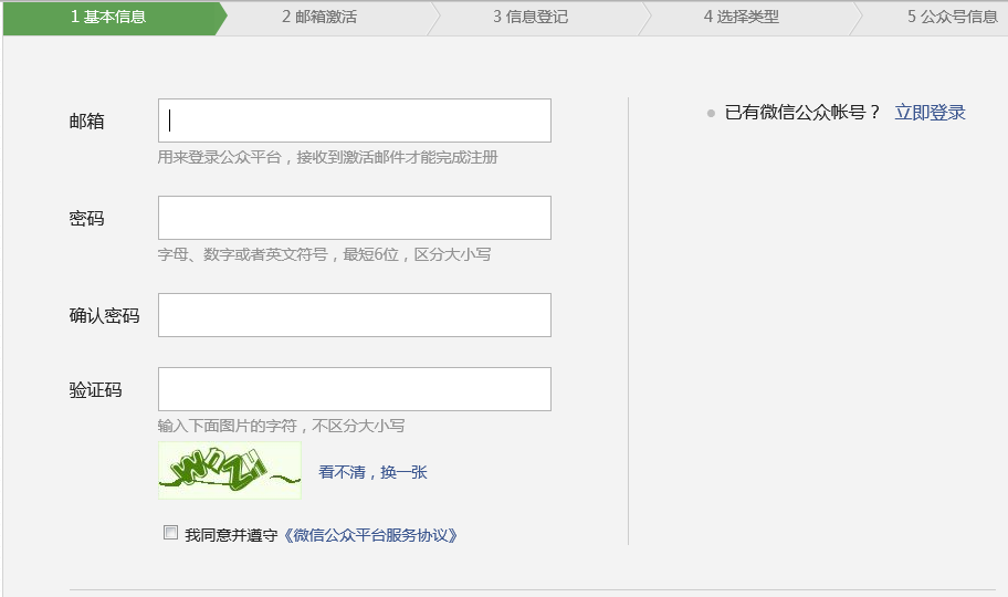 登錄 mp.weixin.qq.com,點擊注冊填寫相關信息即可申請微信公眾號,微信公眾號只能在PC端登錄,不能用手機端,公眾號分服務號和訂閱號,企業可申請服務號,個人、自媒體申請訂閱號,服務號每個月限制群發一條,而訂閱號每天可發送一次,但消息會折疊起來放在一個訂閱號的消息盒子里,服務號仍然是放在聊天列表。